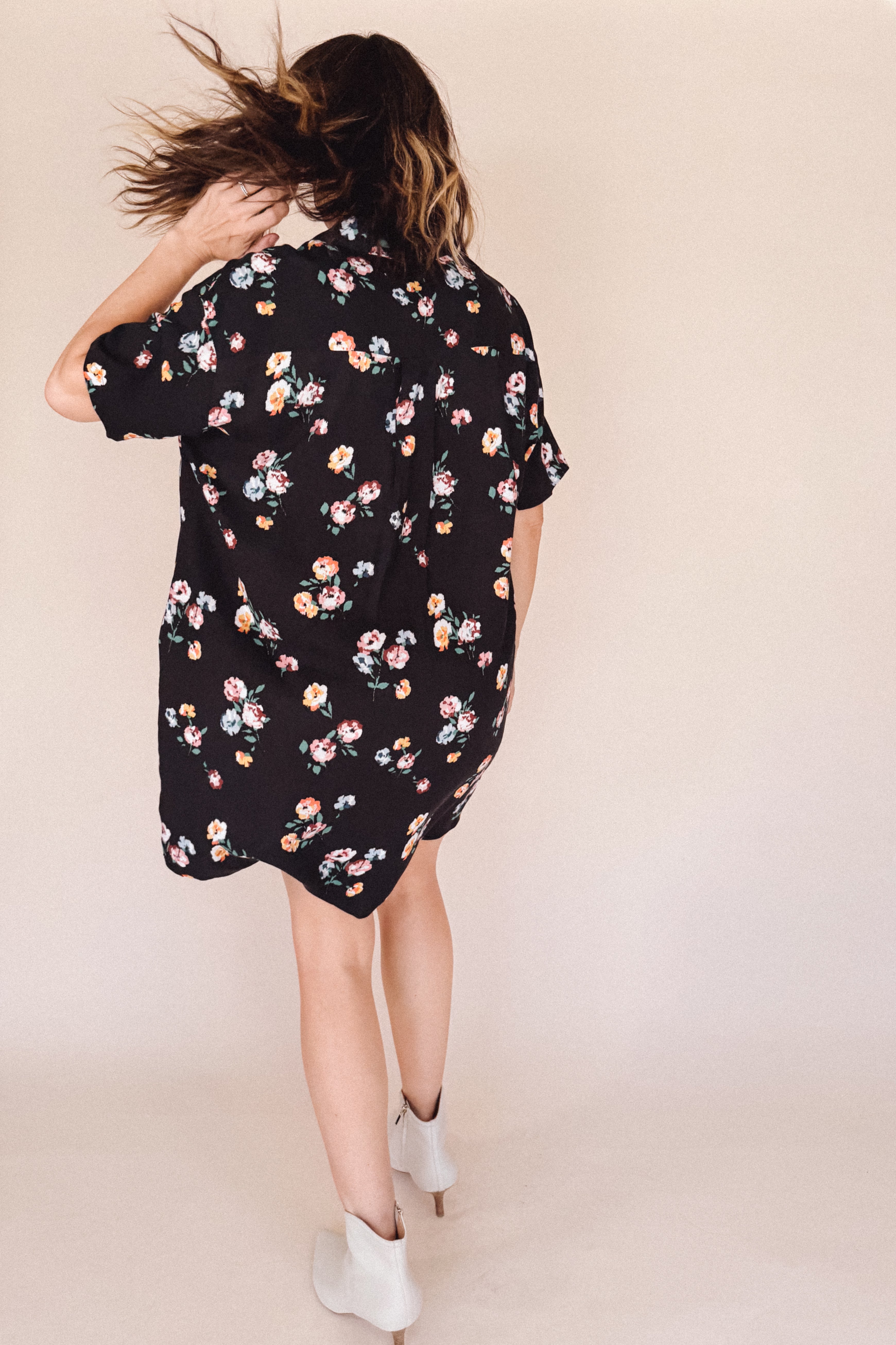 AVERY- BLURRED FLOWER Mini Shirt Dress – (Wear Multiple Ways)
