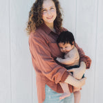 - Shirring on back yoke seam gives you ease of movement – whether you’re reaching, bending, cradling, or playing, you’ll have the room to do it