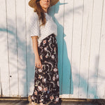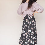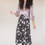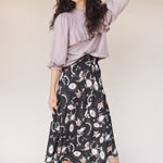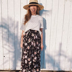 High waisted, wide elastic midi skirt with the perfect twirlability. SERENA in an Eye-catching print is a lovely A-line shape that skims your body and is both flattering and comfortable. What more could you ask for?