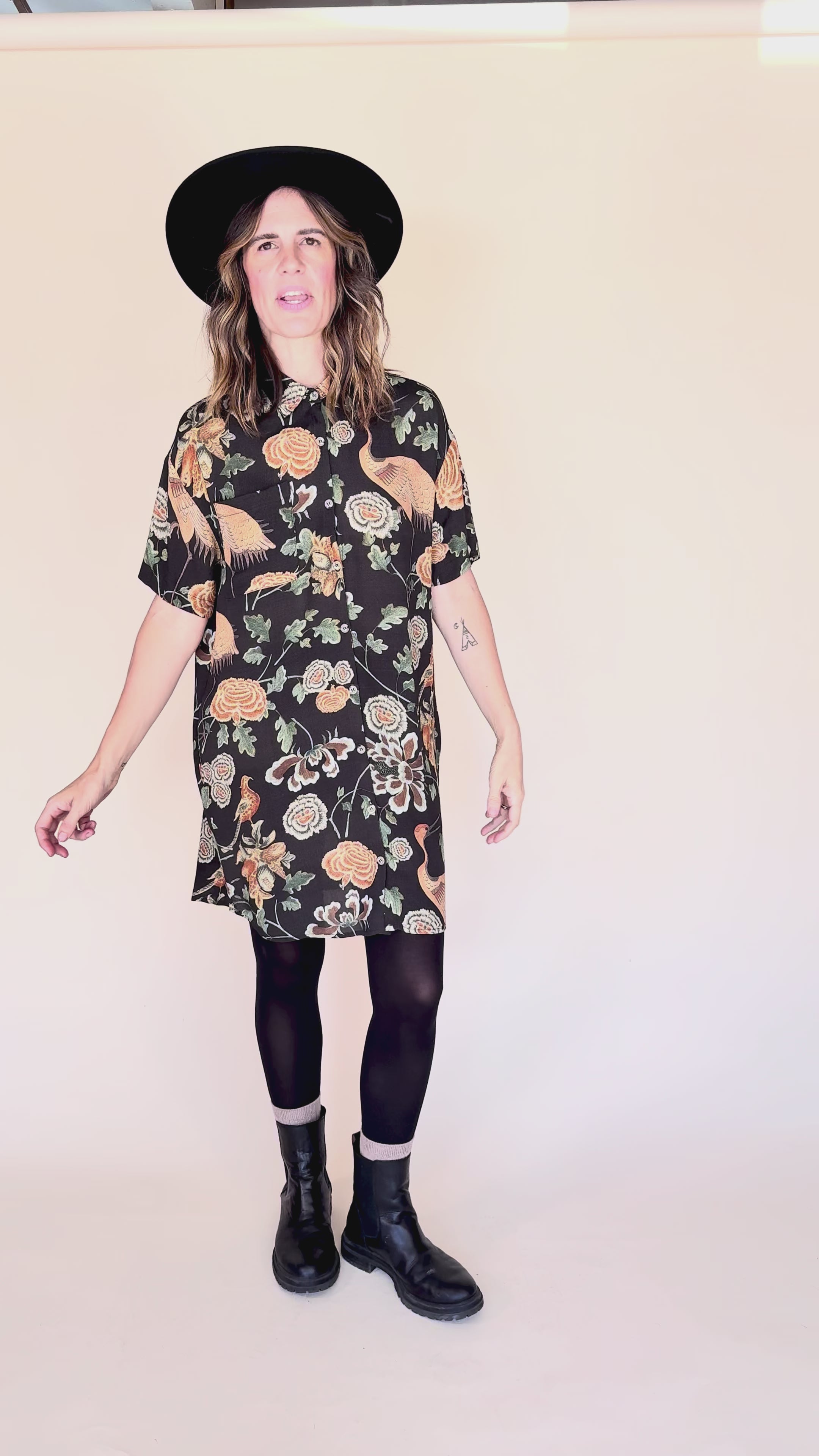 AVERY- CRANE & FLORAL Print Mini Shirt Dress – Button-Up, Collared, Pockets (Wear Two Ways)