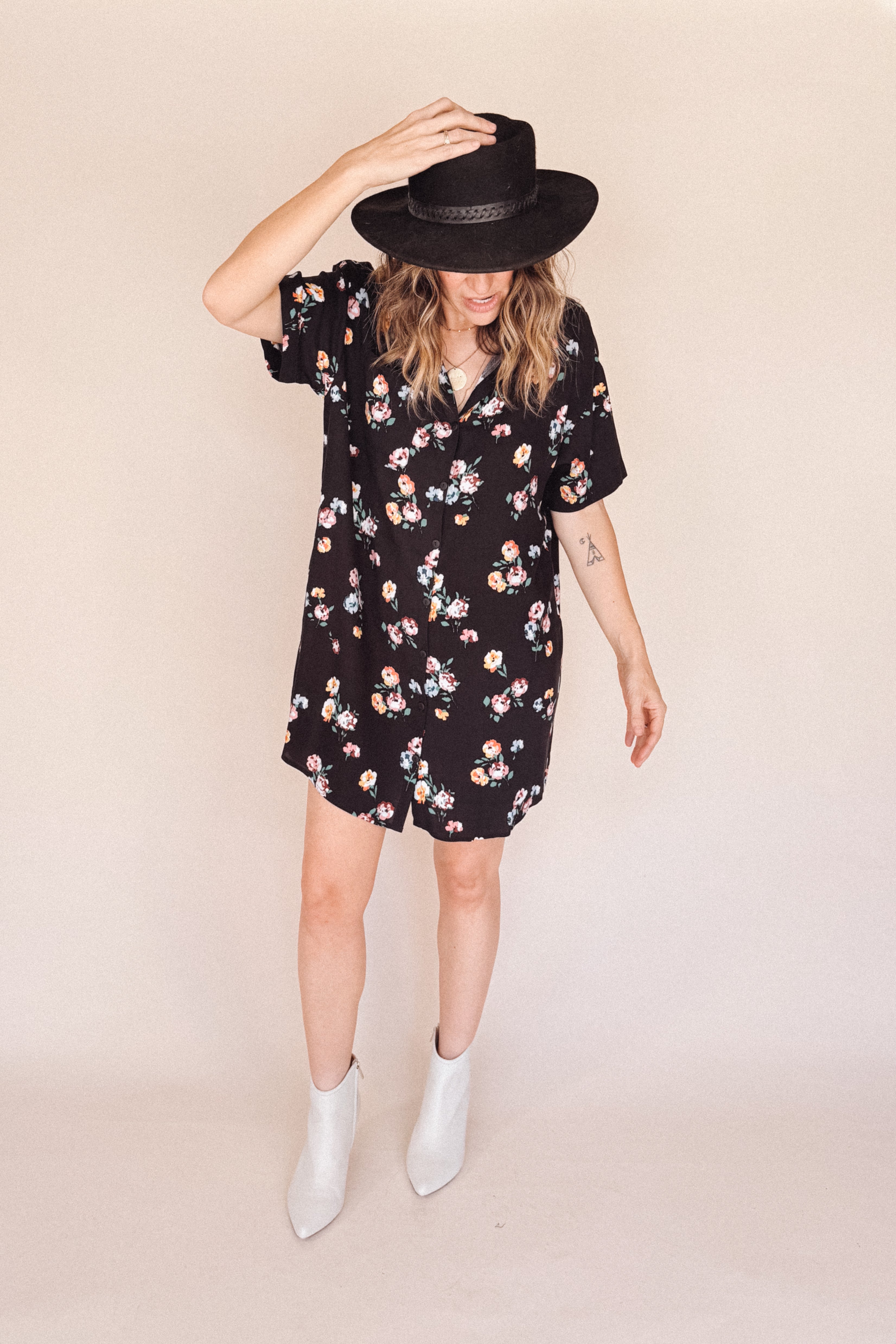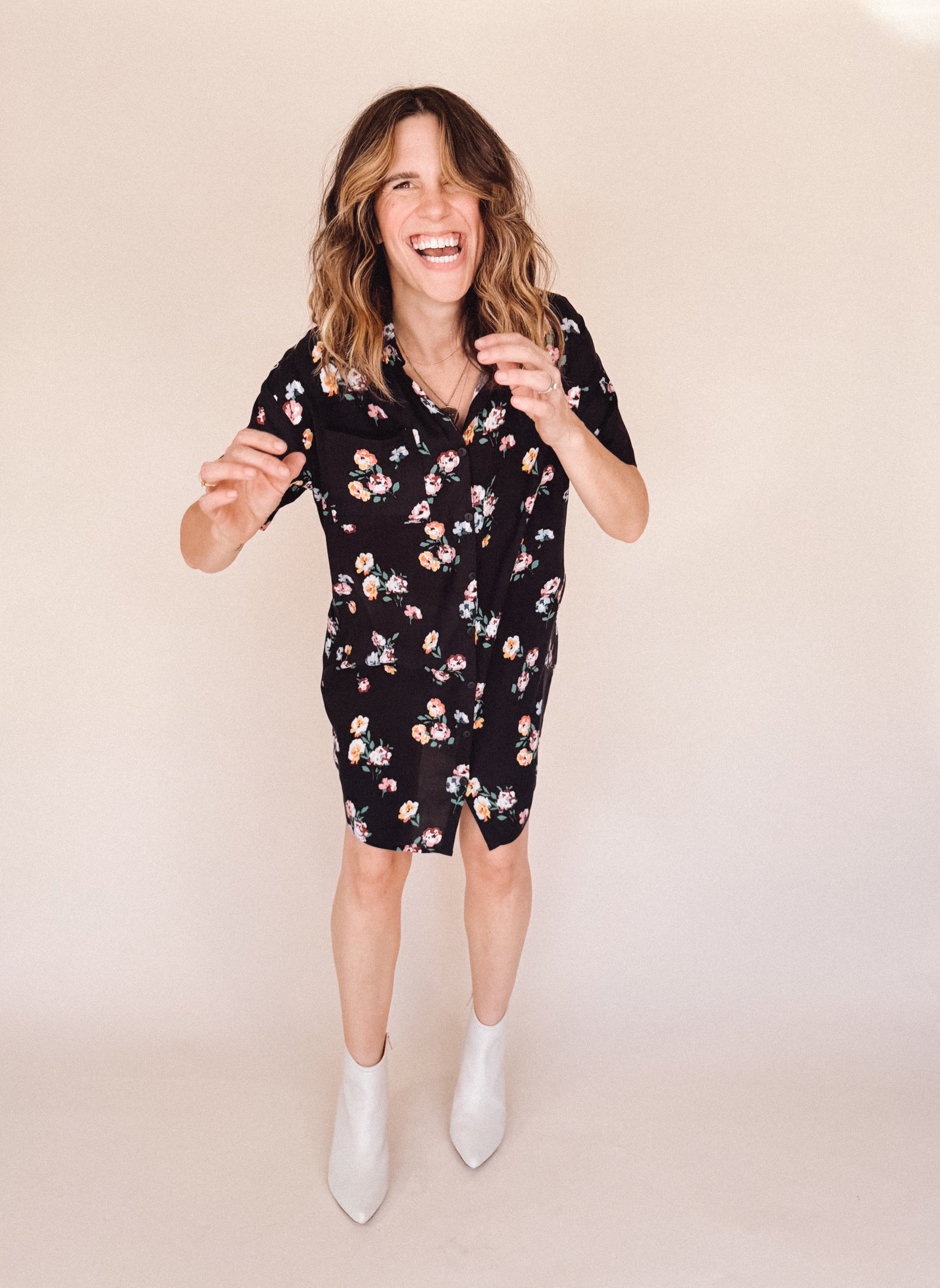 AVERY- BLURRED FLOWER Mini Shirt Dress – (Wear Multiple Ways)