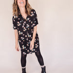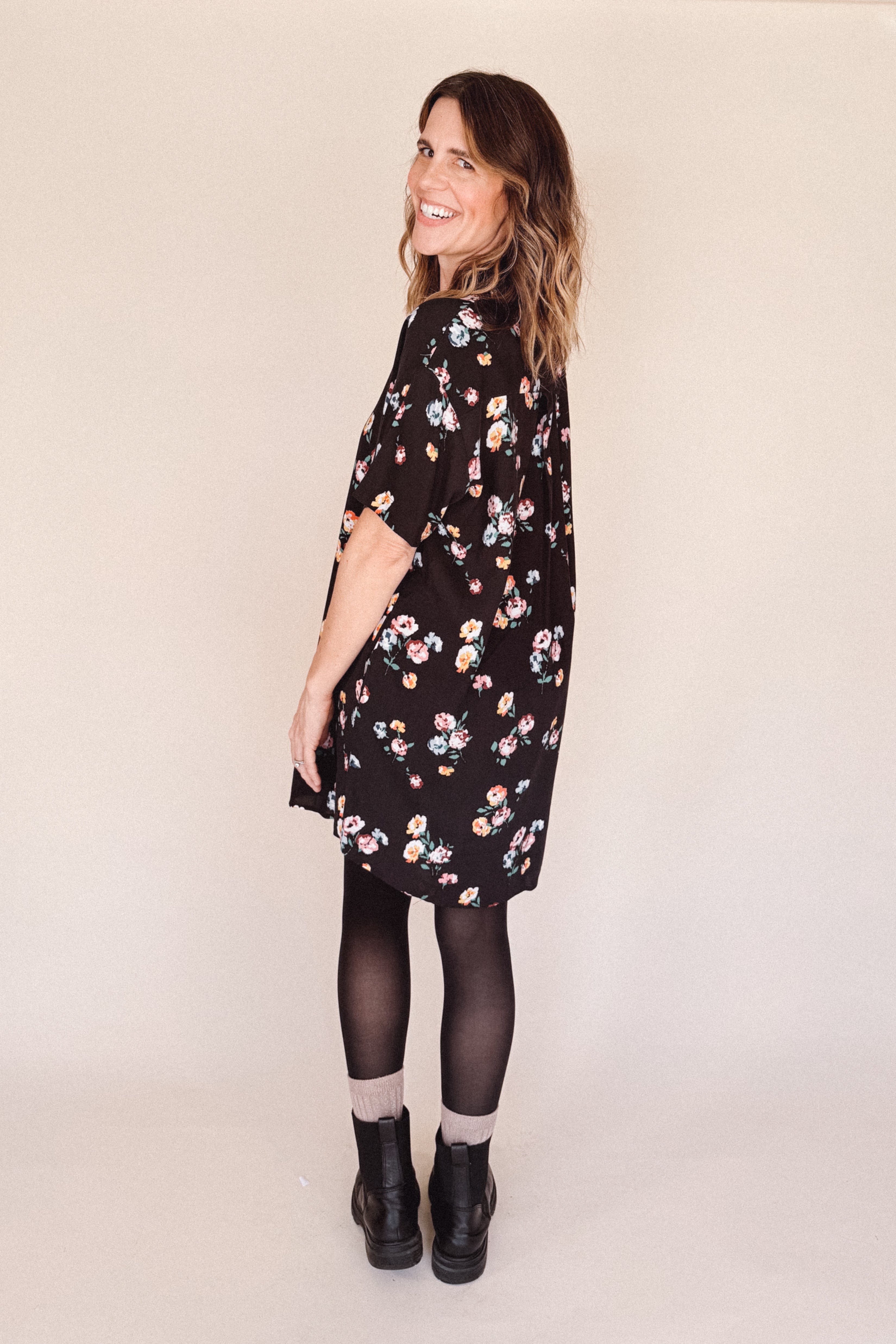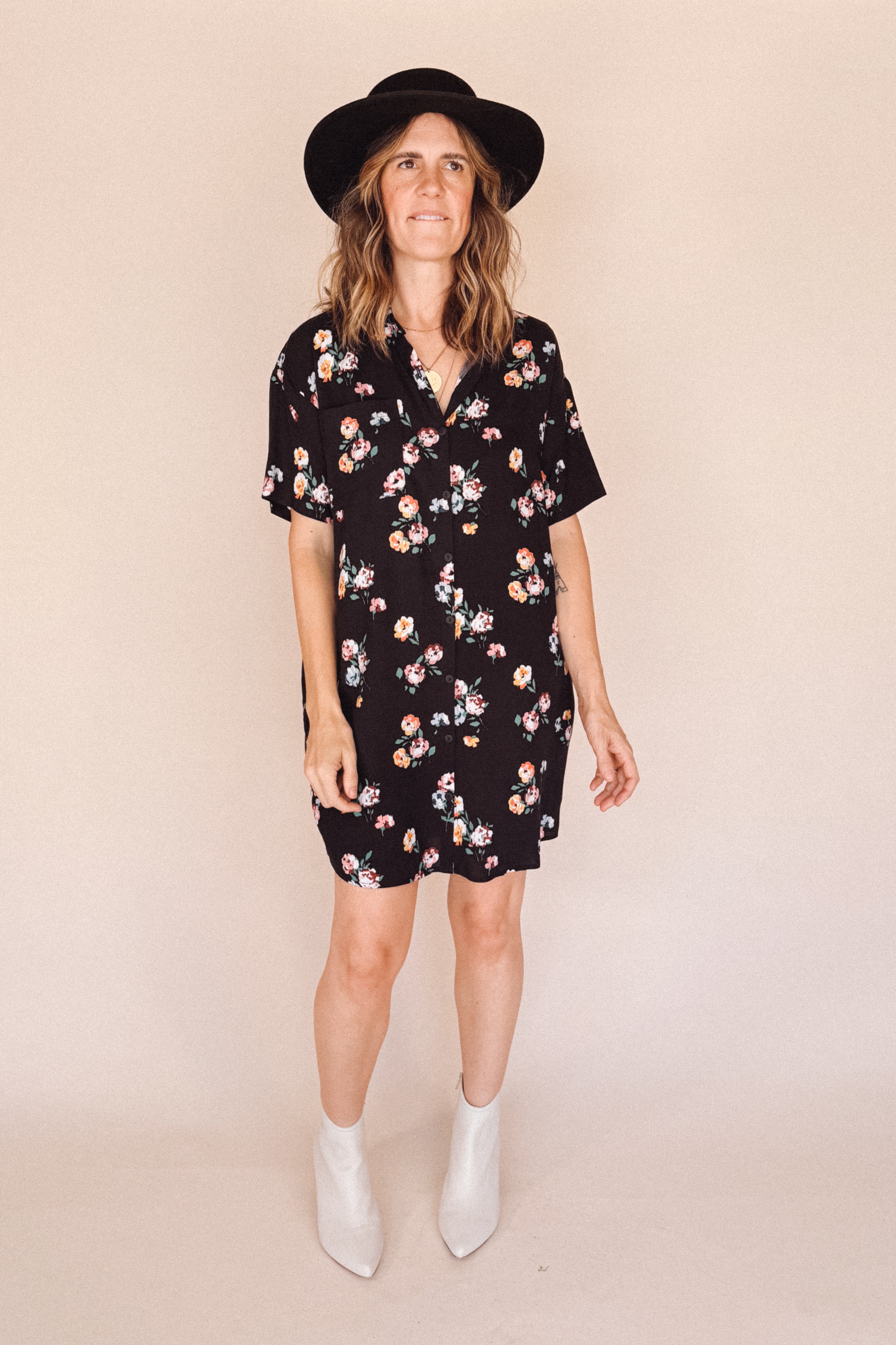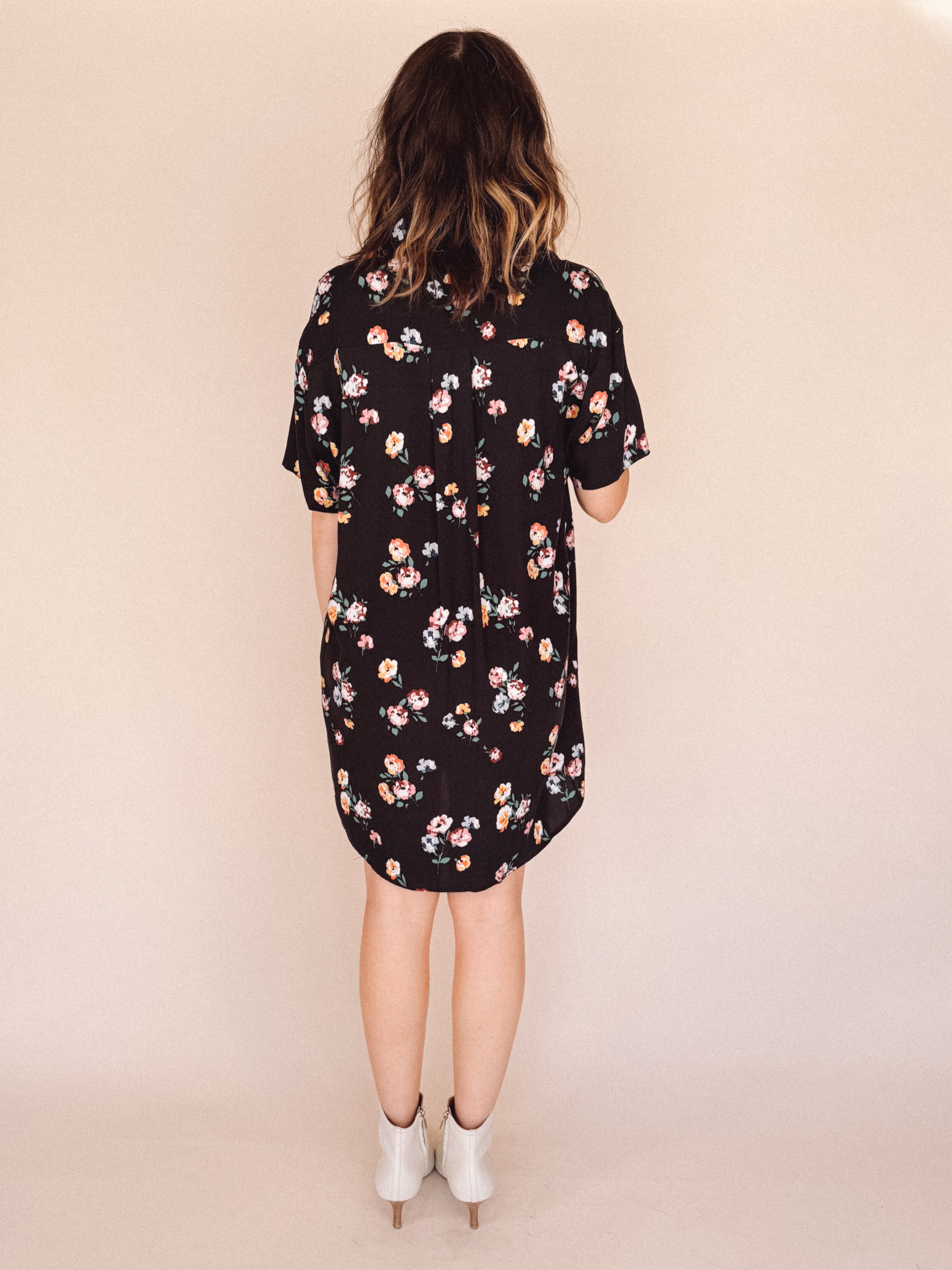 Meet Avery, your easy, wear-everywhere mini shirtdress—now in the Blurred Flower print. This short-sleeve, collared button-up slips on with a relaxed drape and slight dropped shoulder for effortless ease. A center-back pleat (for extra room across the shoulders), breast pocket, and side-seam pockets make it as functional as it is cute. Finished with a curved mini hem that moves with you in soft challis fabric gives effortless movement. Wear it casually with sneakers or chunky combat boots or dress it up with heeled booties, jewelry and a leather jacket.