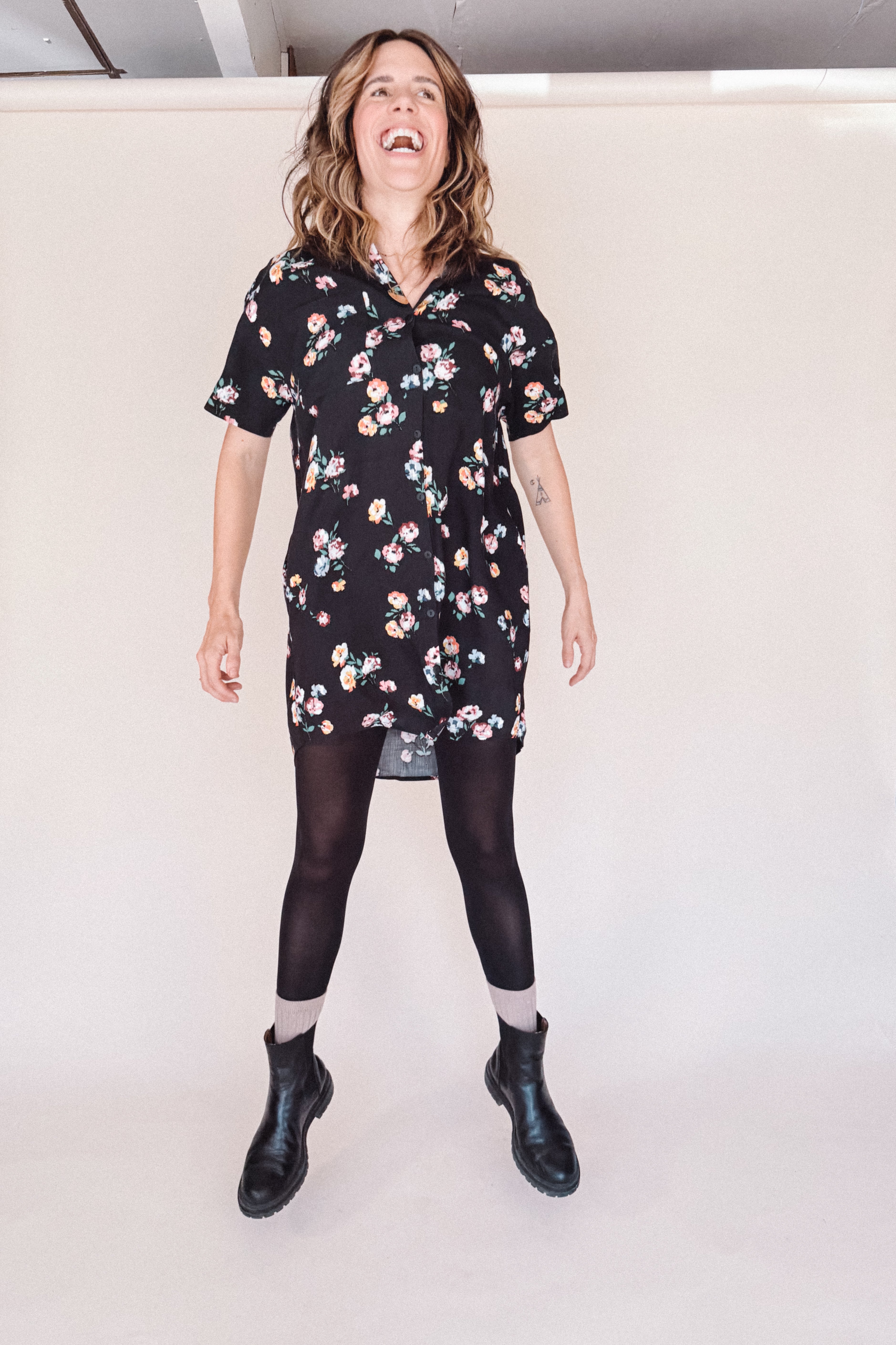 - Buttoned with tights and boots for fall; unbuttoned over a tank and denim for warm days.