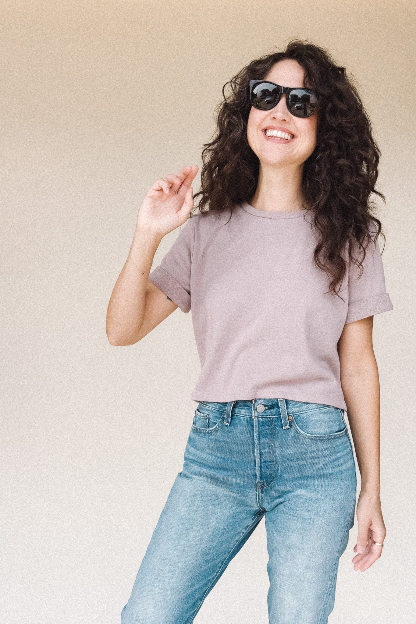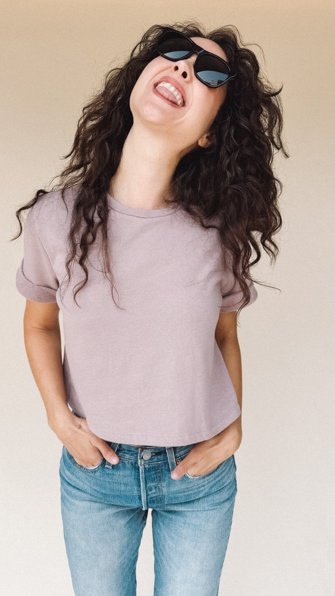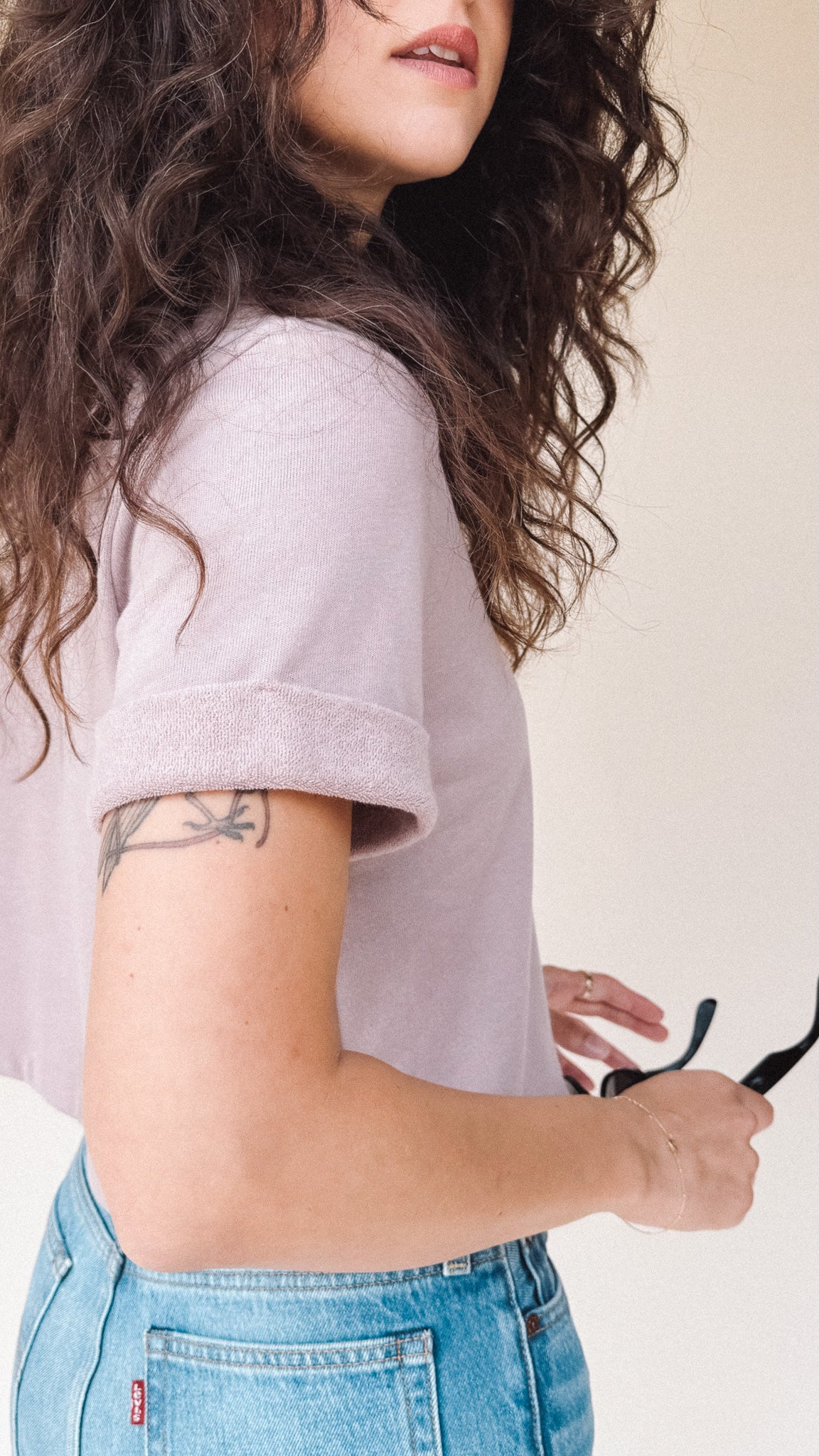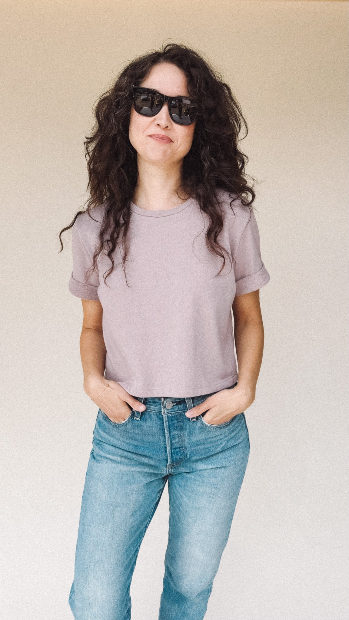 The perfect boxy crop tee in dusty Lilac light fuzzy sweatshirt material. It goes with everything. The one you’ll reach for over and over, the DEE crop top’s understated style is confidence itself.