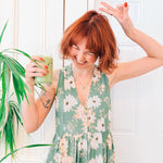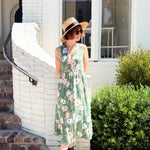 Say hello to Leah in her flirtiest form—our green floral midi dress made from soft deadstock rayon that drapes like a dream. This romantic favorite features a V-neckline, angled waist seam, and ruffled hem that flatters without clinging. The allover floral print gives it vintage-inspired charm, while the pockets and button-up front make it practical for daily wear.
