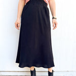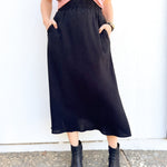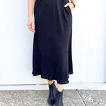SERENA A-Line High Waisted Midi Skirt in BLACK crepe