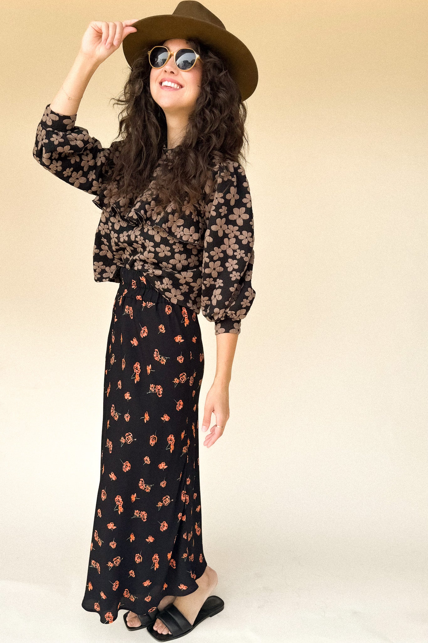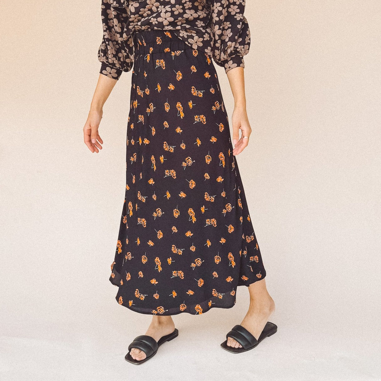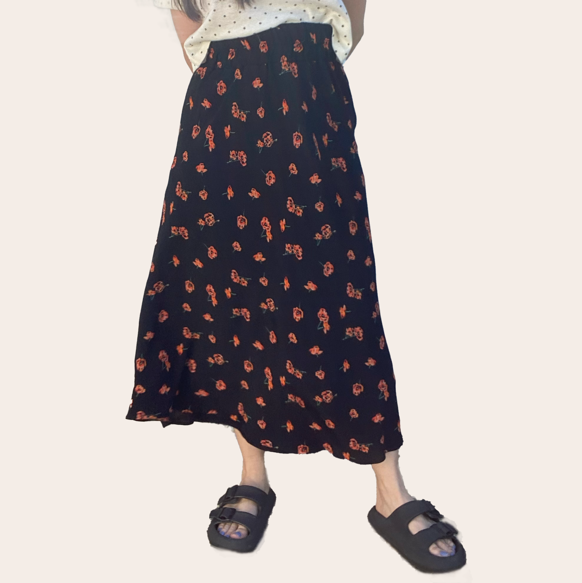 SERENA A-Line High Waisted Midi Skirt in Poppy print