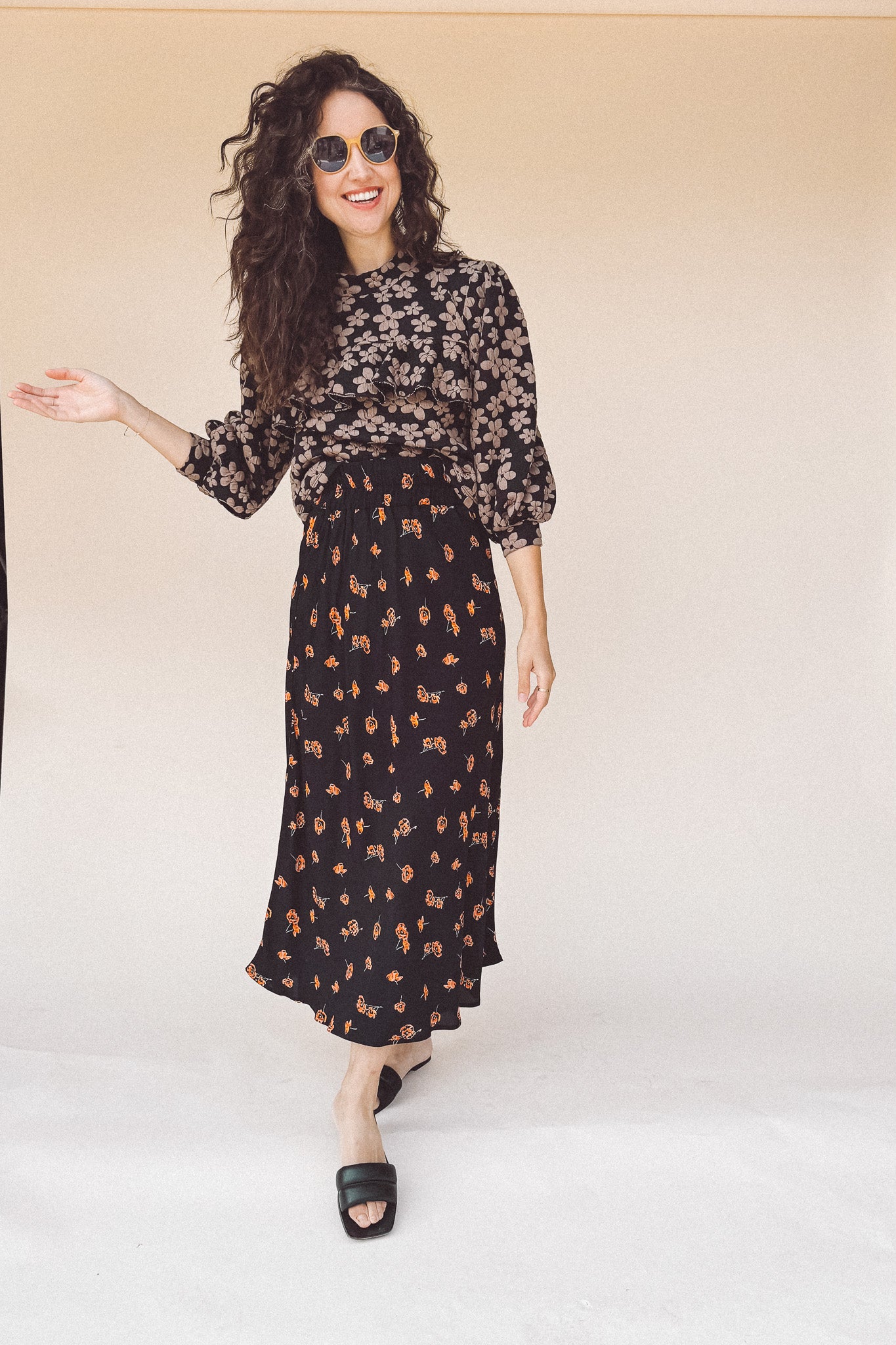 The perfect versatile high waisted midi skirt for those days you want to step out looking chic but stay comfortable and be able to move around freely with a twirl.