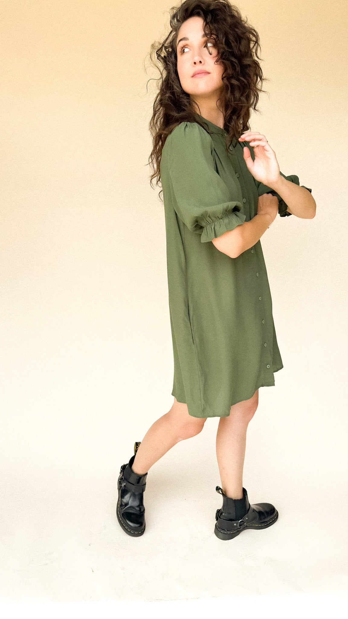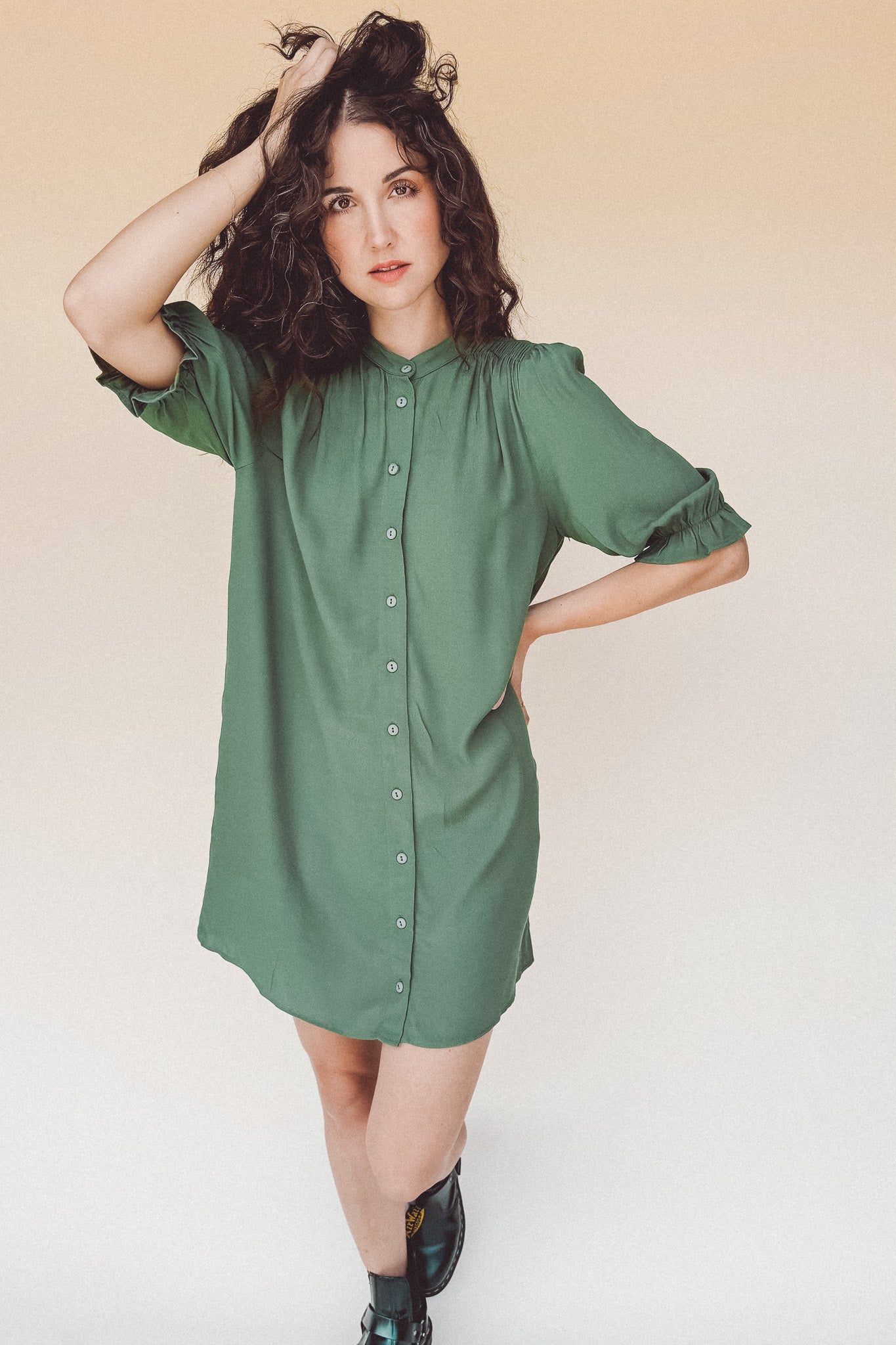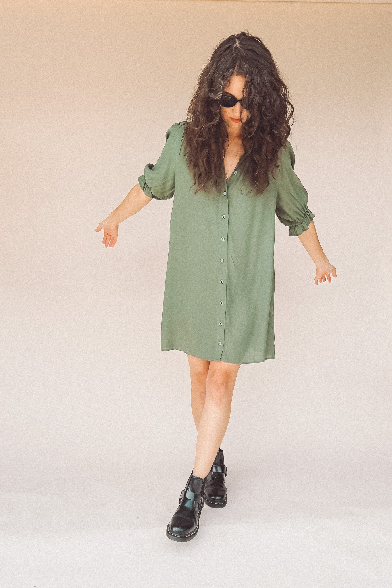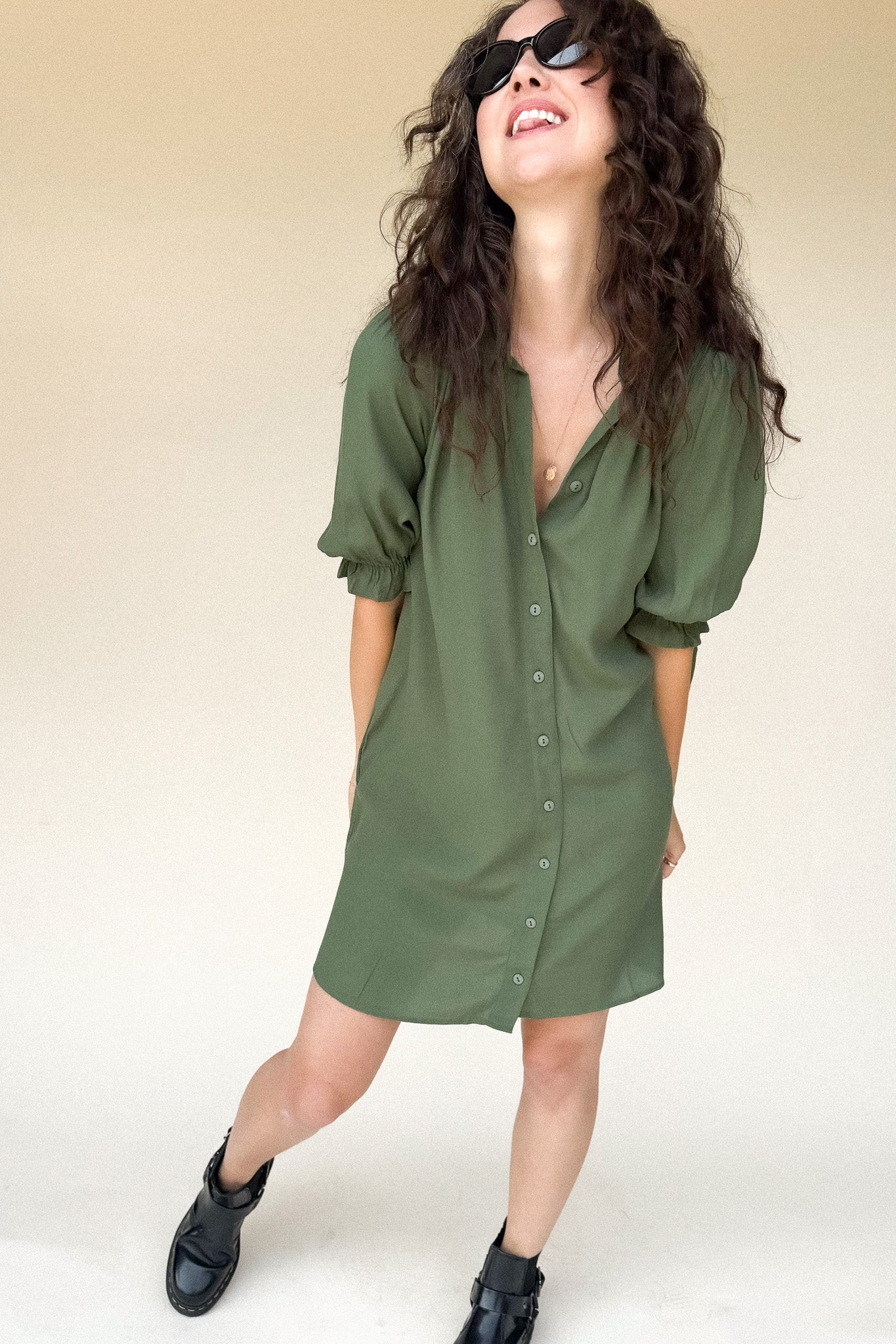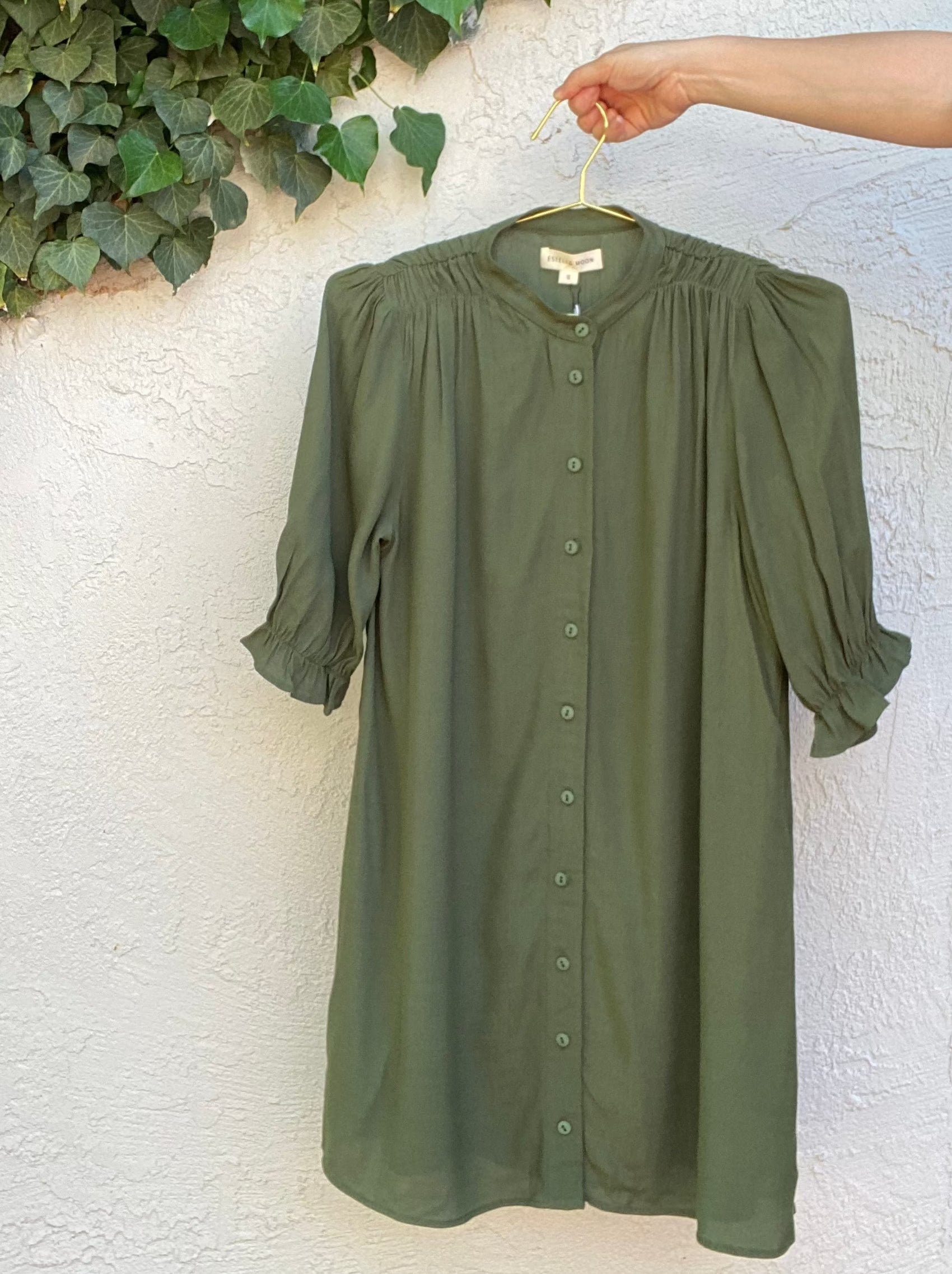 TARYN Mini Shirtdress in green SOLID